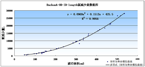 (2)同系列不同過濾精度燒結活性炭棒,使用壽命及壓降變化分析。